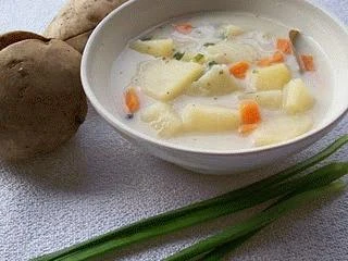 Por kroimy w krążki, marchewkę, seler i pietruszkę kroimy w małą kostkę, ziemniaki w dużą. Przekładamy warzywa do garnka, zalewamy wodą, dodajemy trochę soli, ziele angielskie i liście laurowe. Gotujemy do miękkości. Pod koniec dodajemy majeranek, doprawiamy posoloną zahartowaną śmietaną, solą oraz pieprzem. Na talerzach posypujemy posiekana zieleniną.