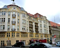 Funkcja budynku typowa dla kamienic miejskich czyli dwie pierwsze kondygnacje pomieszczenia biurowe, handlowe i restaurację, wyższe kondygnacje 3 i 4 mieszkania z łazienkami obsługiwane klatkami schodowymi i windą. Budynek na planie dwóch przylegających do siebie pod rozwartym kątem prostokątów, z wyoblonym narożnikiem, z trzema oficynami, z dwoma nieregularnymi dziedzińcami.Podwórze budynku przy Placu Wolności 14 zamykał pawilon wystawowy z przeszklonym dachem,użytkowany jeszcze w okresie międzywojennym przez Salon Stowarzyszenia Artystów Plastyków.