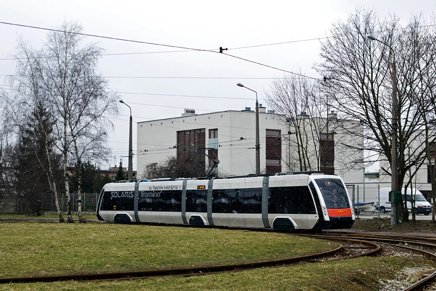 Prototypowy egzemplarz Solarisa Tramino na pętli przy Budziszyńskiej