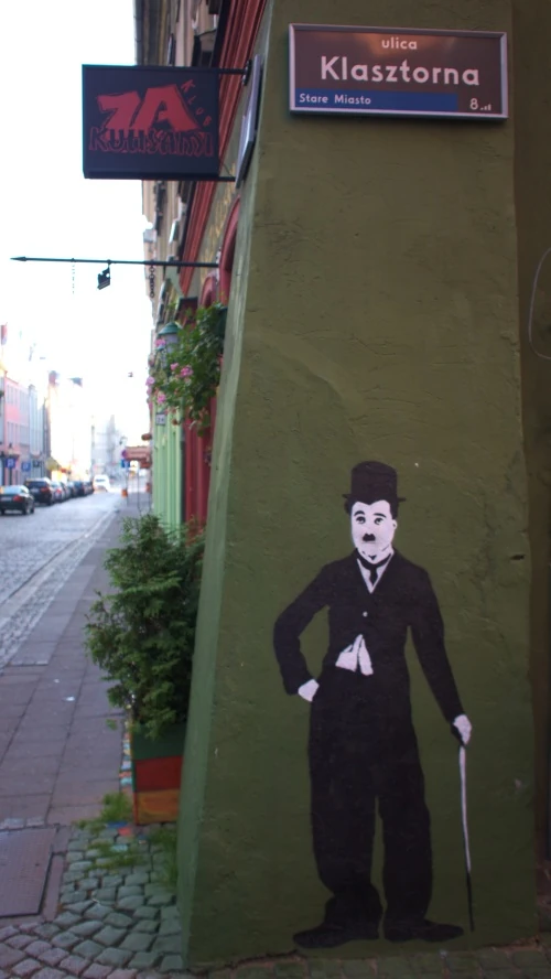 Charlie Chaplin na muralu przy ulicy Klasztornej